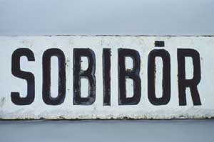 | Skilt fra togstationen i Sobibor. Copyright USHMM #N0094301. |